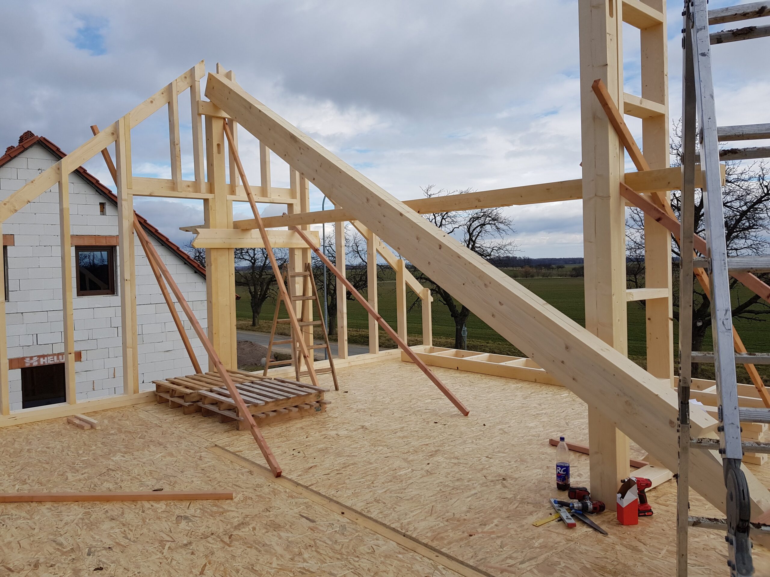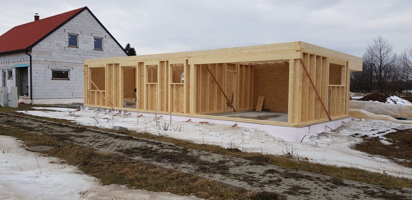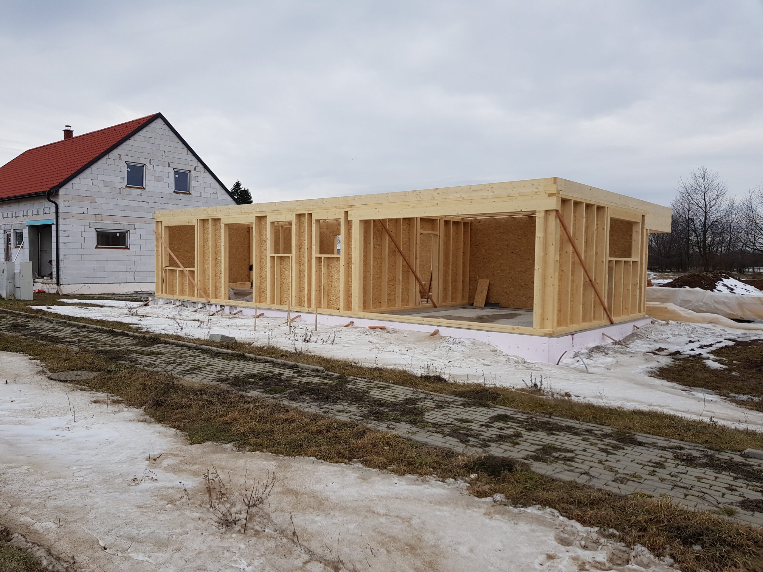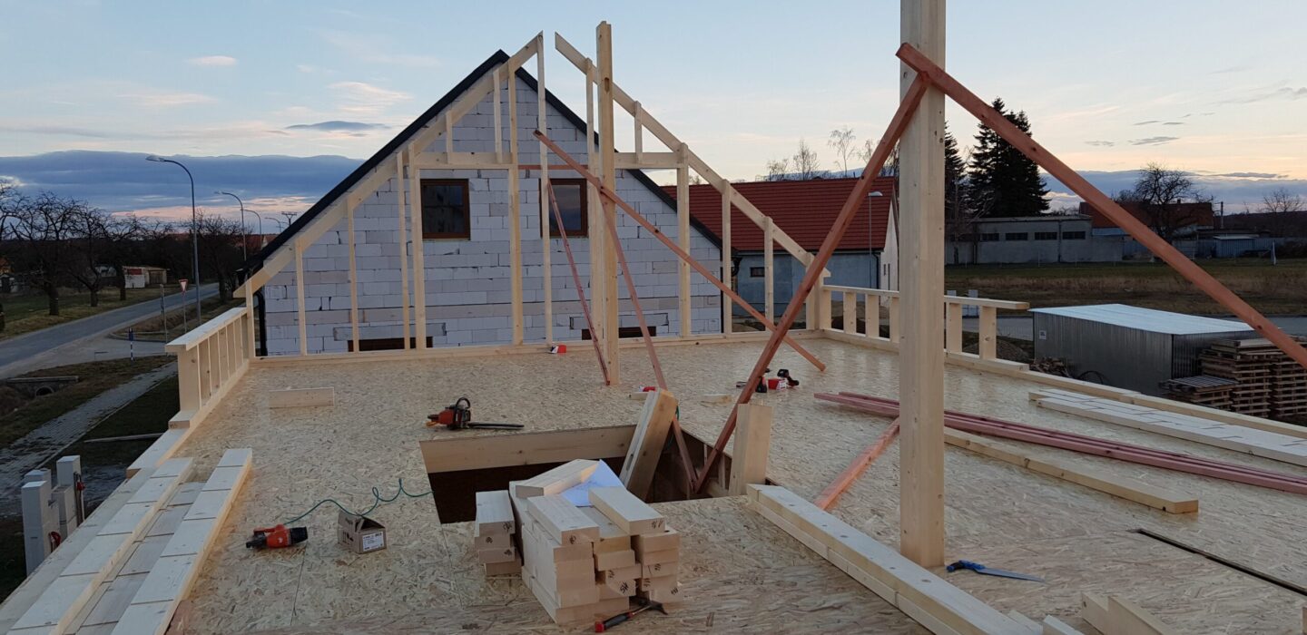 - Výstavba dřevěné konstrukce – hrubá stavba