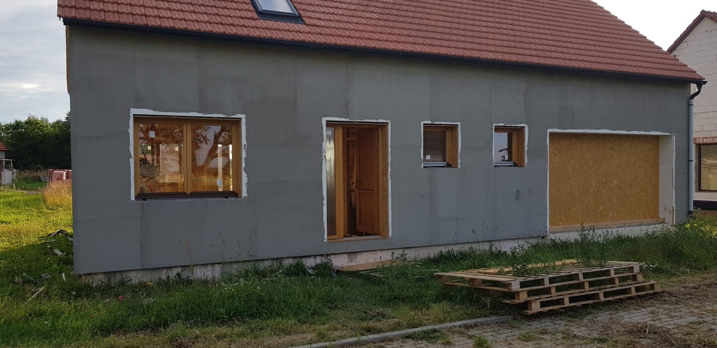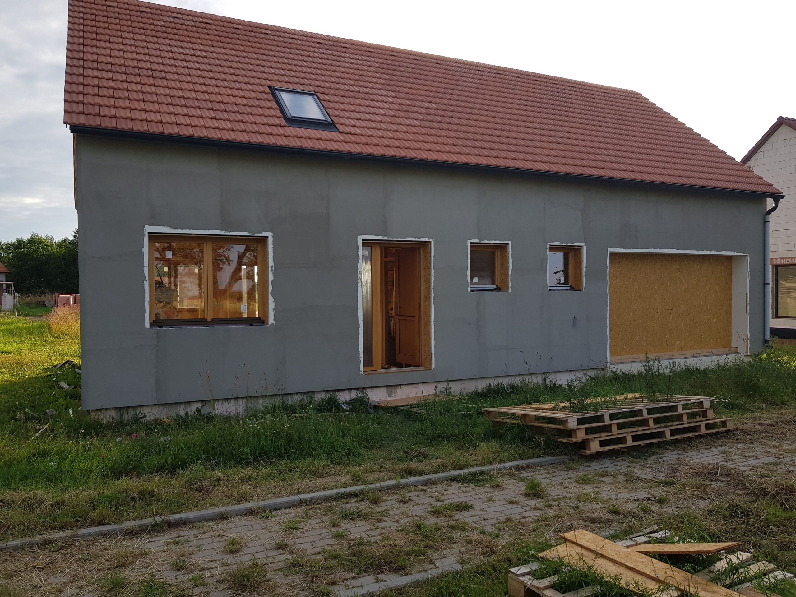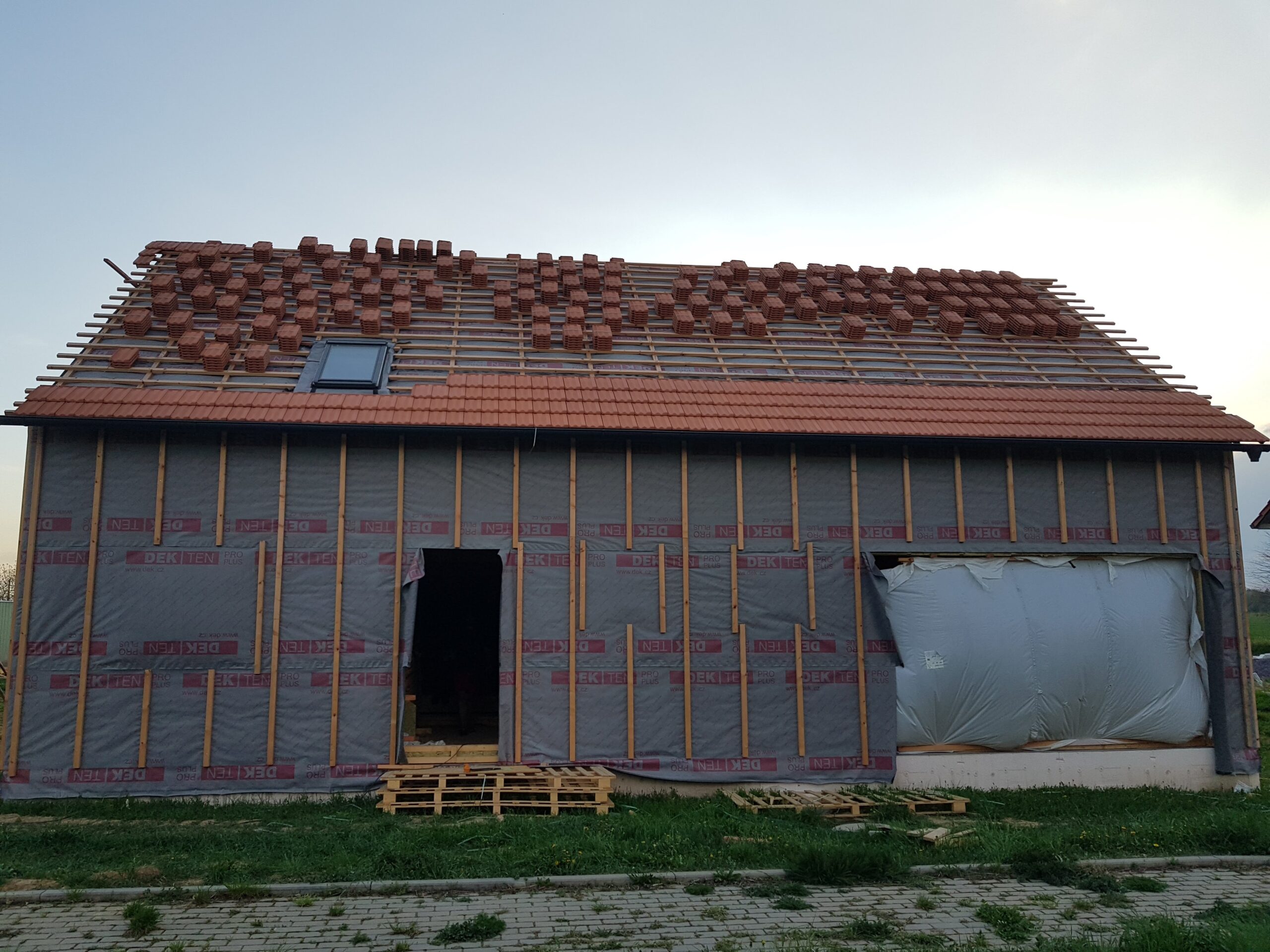 - Montáž fasádní UV difusní fólie, Izolace a OSB desek na stěny a strop