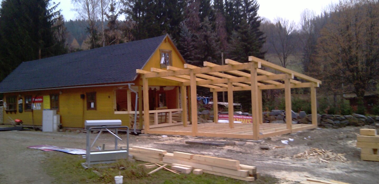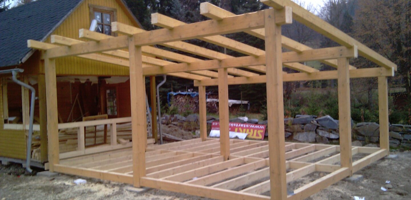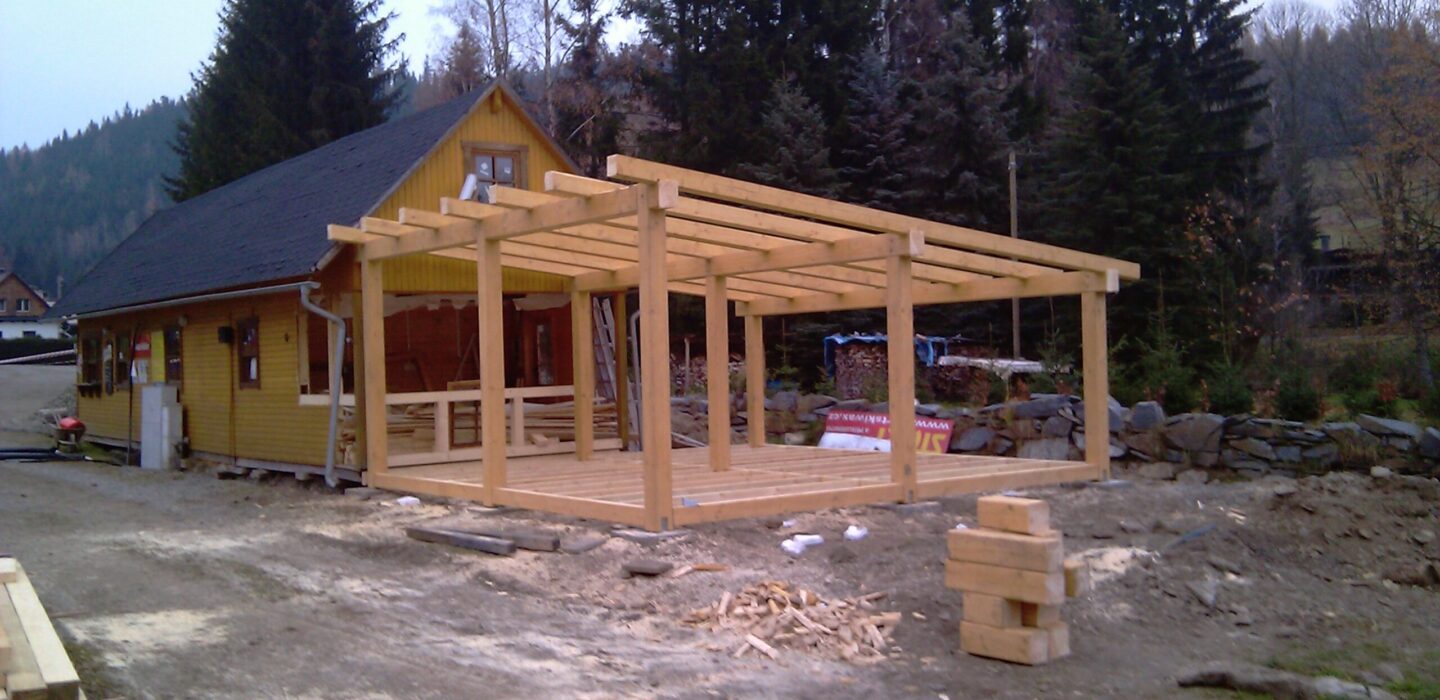 Výstavba kryté terasy, dřevěná konstrukce – hrubá stavba