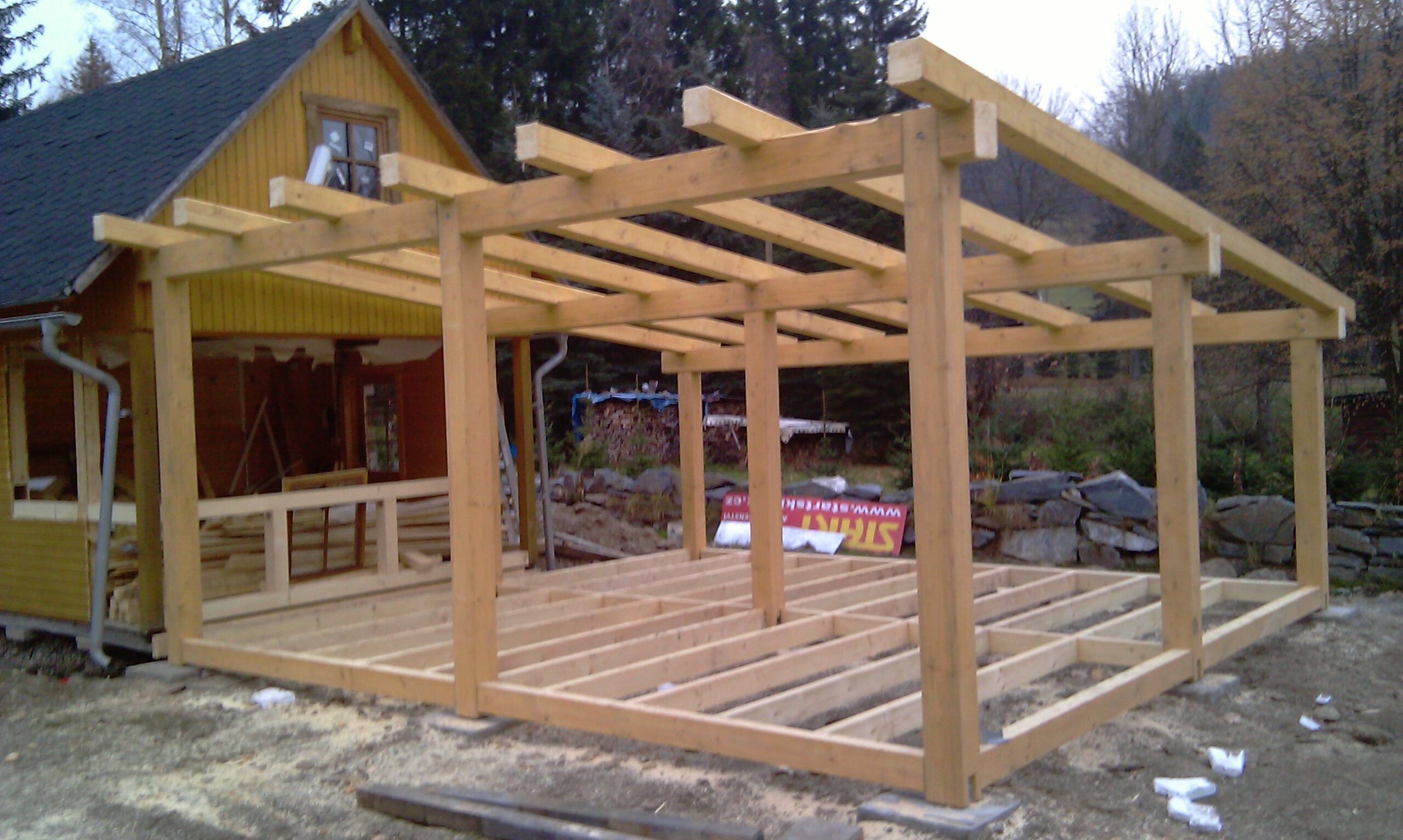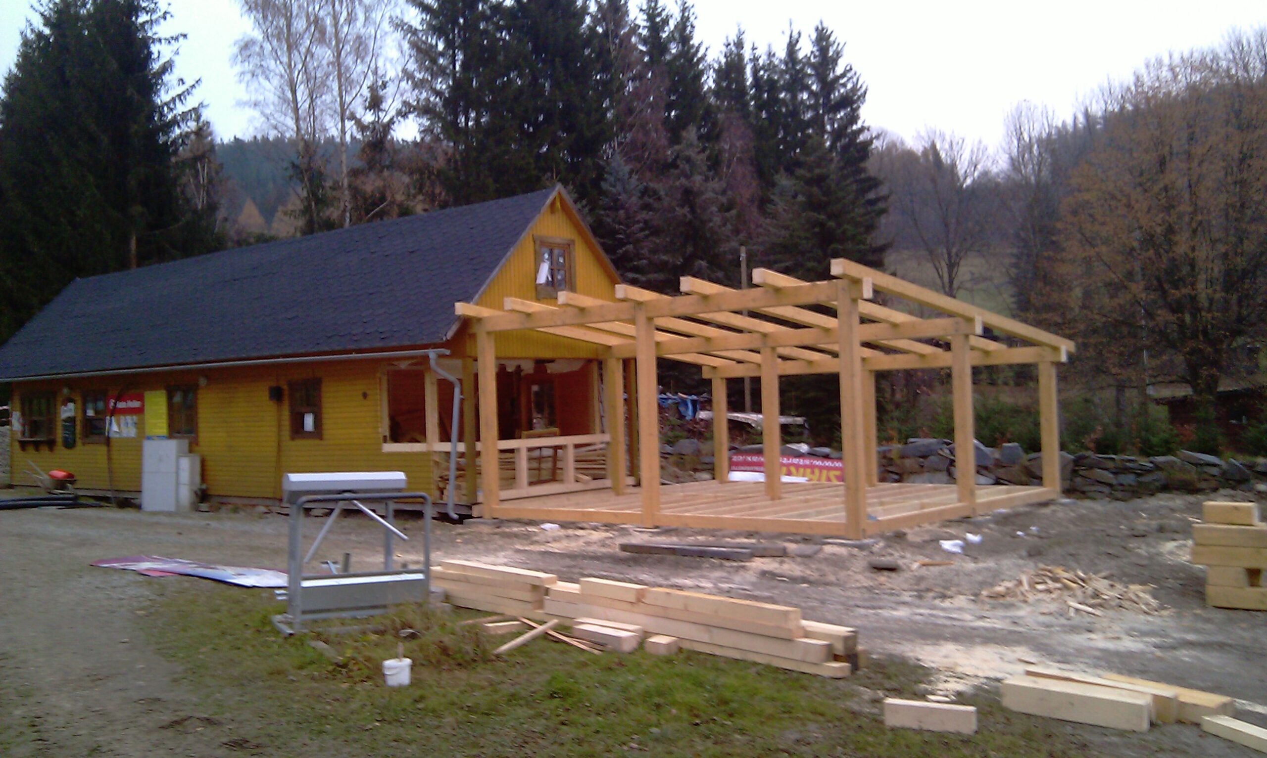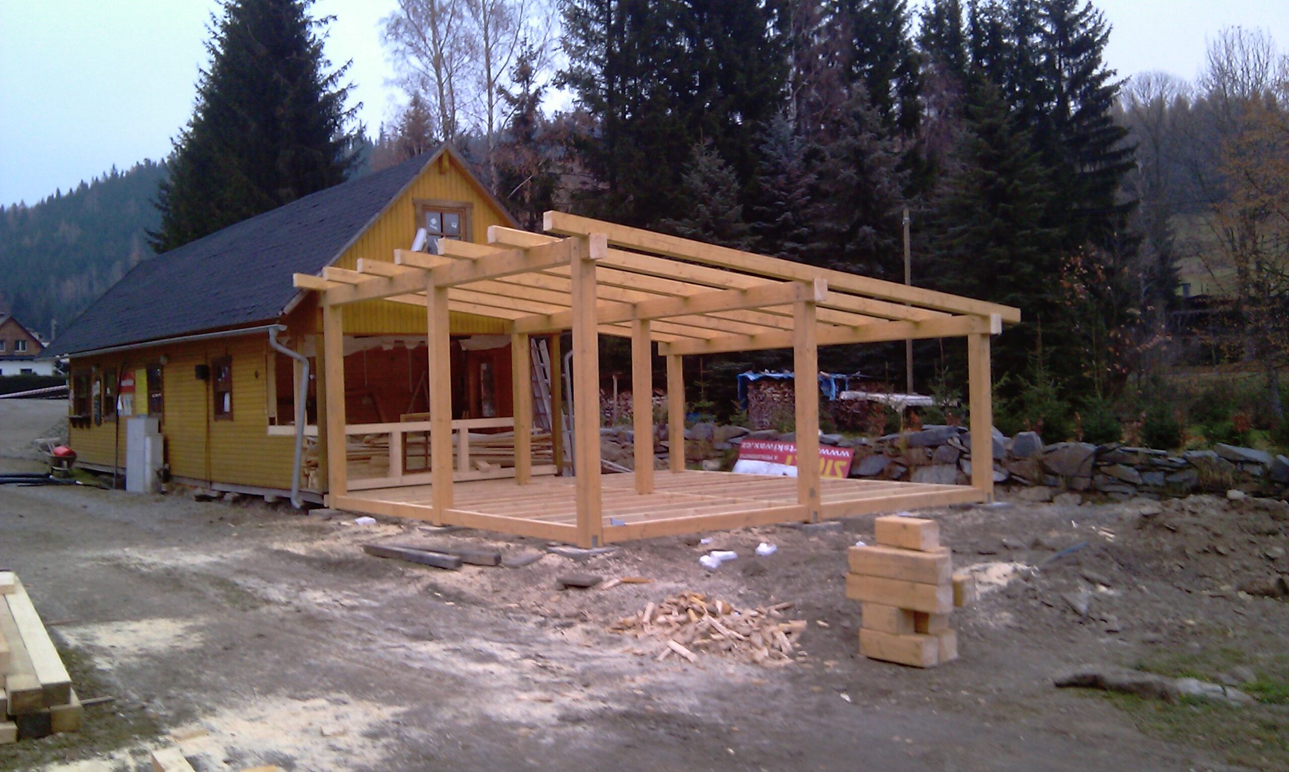 Výstavba kryté terasy, dřevěná konstrukce – hrubá stavba