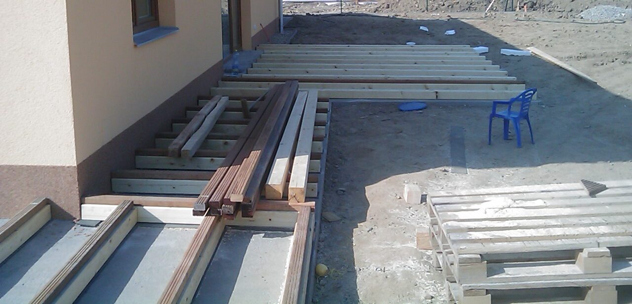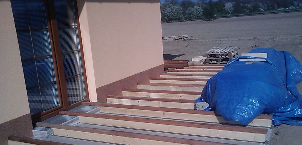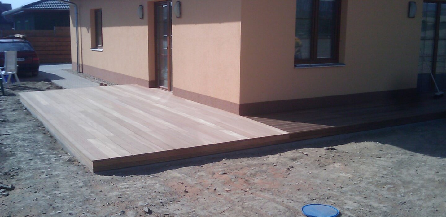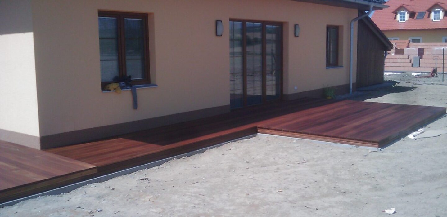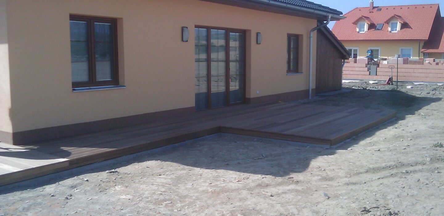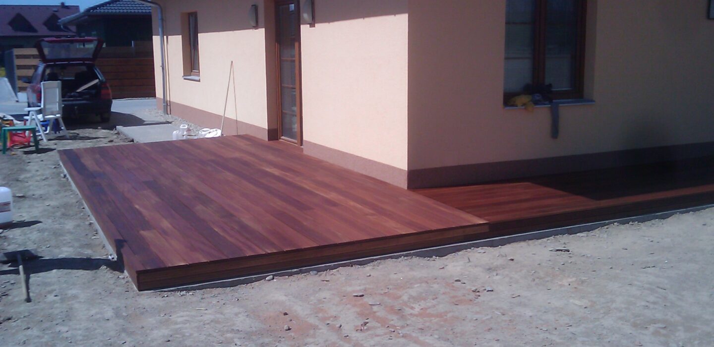 REALIZACE: 2010 CO BYLO SOUČÁSTÍ REALIZACE: montáž dřevěných podkladních KVH hranolů a latí z materiálu bankirai Montáž dřevěných terasových prken z materiálu bankirai